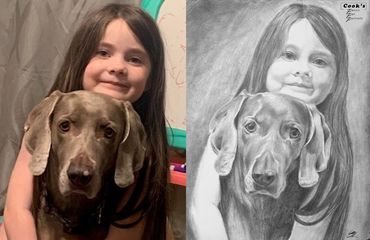 My friend Justin asked me to complete a pet portrait of their family dog Kali, and his daughter Aspen. This portrait was done in memoriam of Kali who passed away on February 26th, 2024, and will be a surprise Christmas gift for Aspen. Kali was a big part of their family, as well as Aspens former protector, and will be missed dearly.